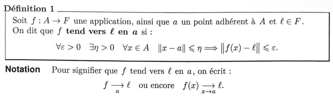 Définir une application qui tend vers l en a.