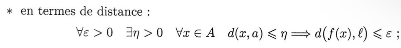Donner la définition de la limite de f en terme de distance.