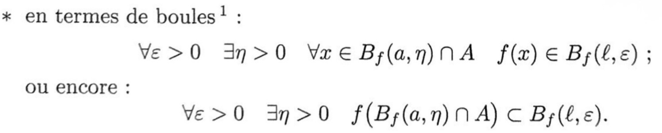 Donner la définition de la limite de f en terme de boules.