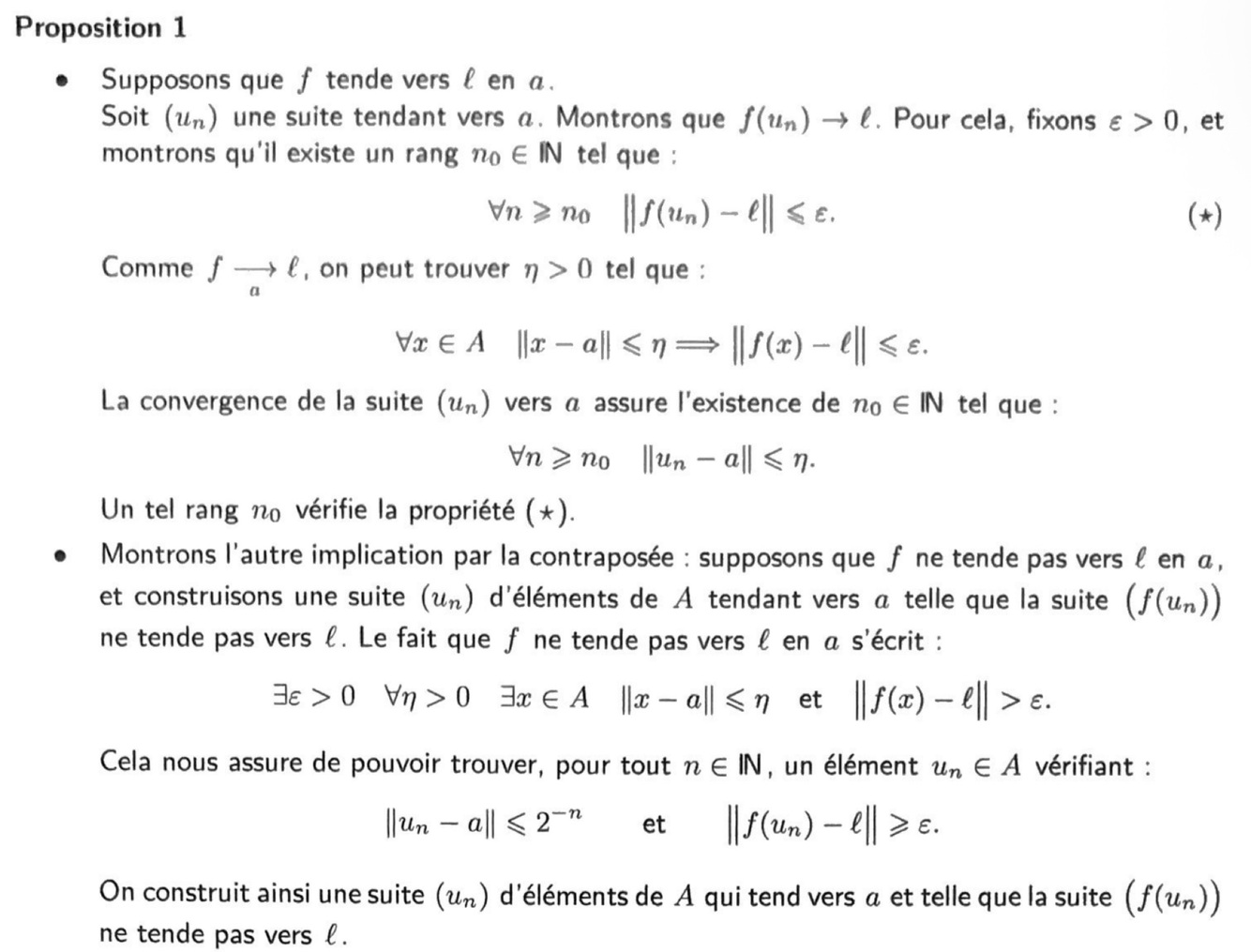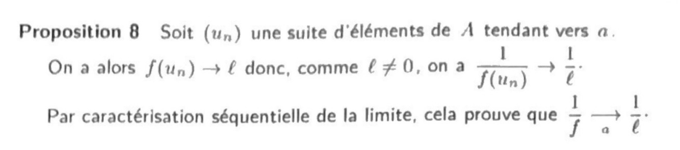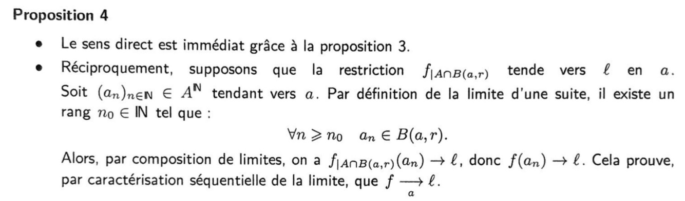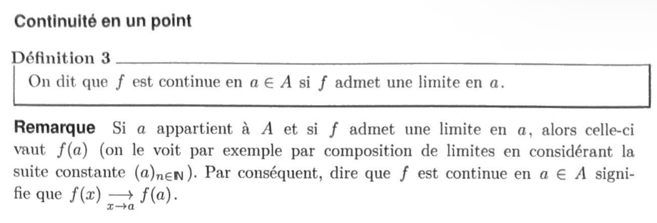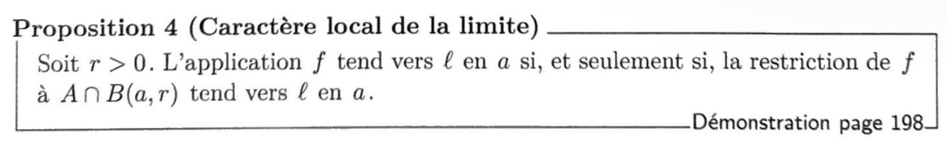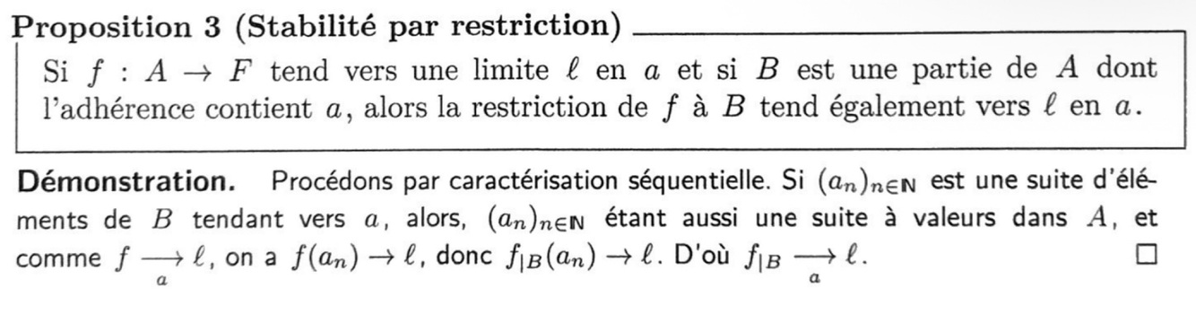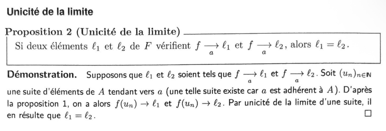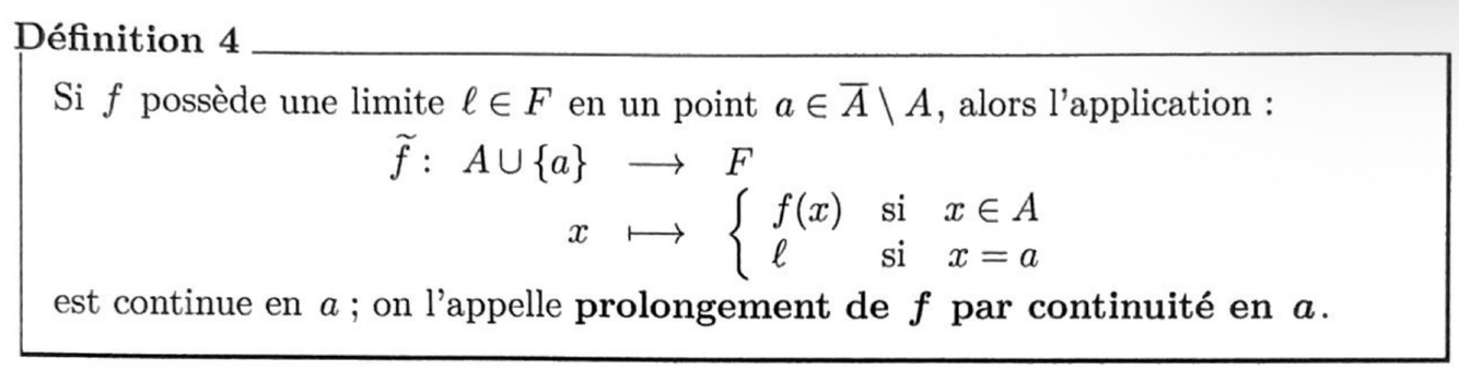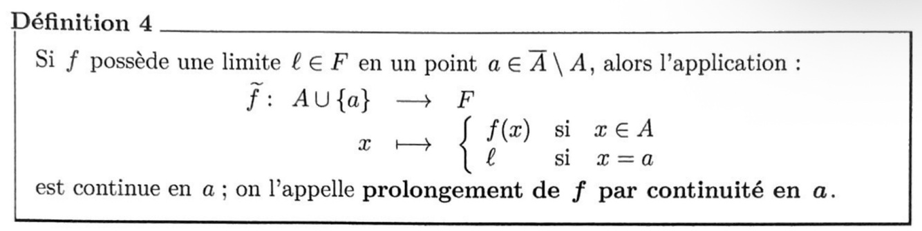 L’unicité de la limite entraîne que l’application f(tilde) de la définition précédente est l’unique prolongement de f à AU{a} qui soit continu en a.