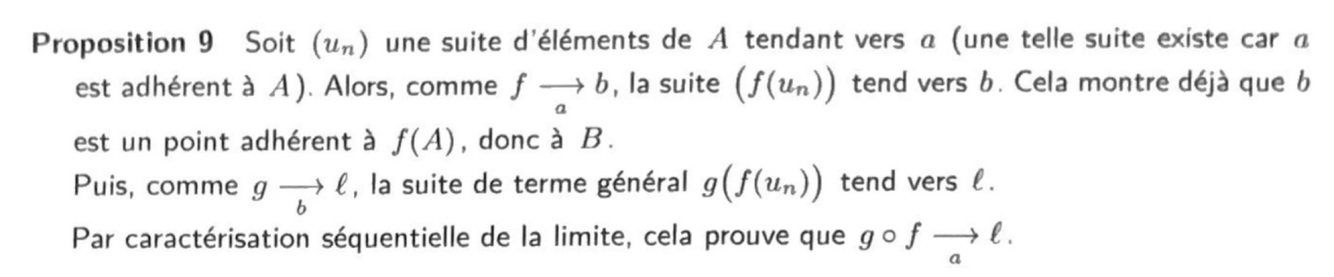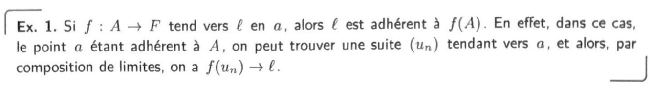 Montrer que si f : A —> F tend vers l en a, alors l est adhérent à f(A).