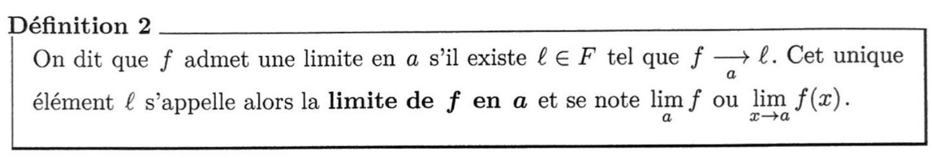 Quand dit on que f admet une limite en a ?