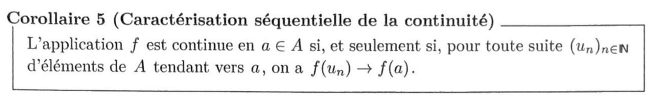 Énoncer la caractérisation séquentielle de la continuité.