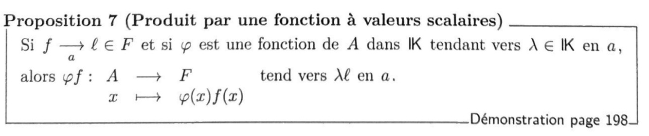 Quelle est la propriété de stabilité de la limite par produit par une fonction à valeurs scalaires ?