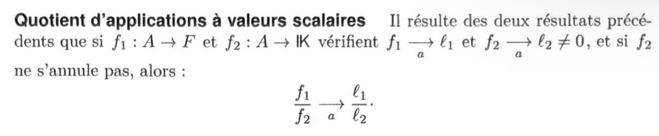 Quelle est la propriété de stabilité de la limite par quotient ?