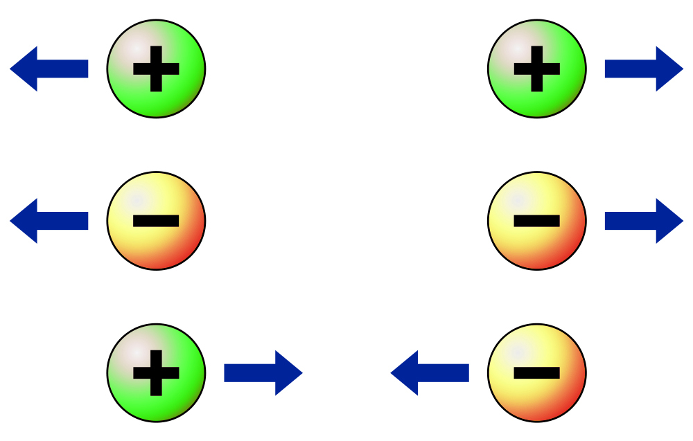 Opposite charges attract and like charges repel.