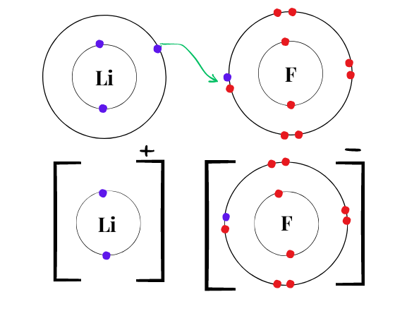 Explain in terms of electrons what occurs when lithium bonds with fluorine