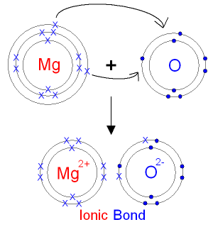 Explain in terms of electrons what occurs when magnesium bonds with oxygen