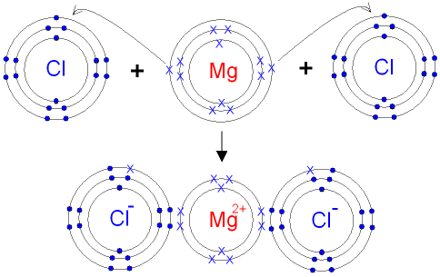 Explain in terms of electrons what occurs when magnesium bonds with chlorine