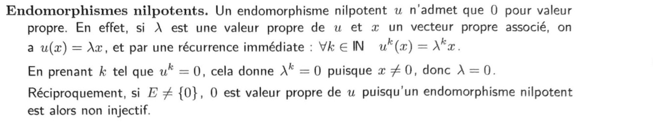 Donner les éléments propres d’un endomorphisme nilpotent.