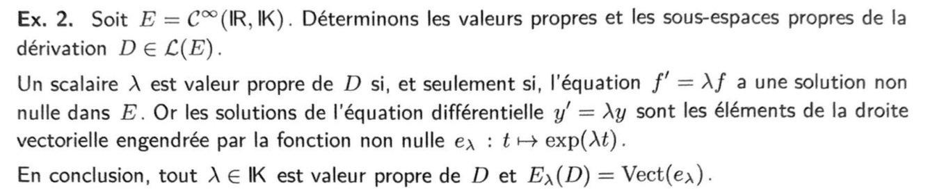 Soit E = Cinf (IR, IK). Déterminons les valeurs propres et les sous-espaces propres de la