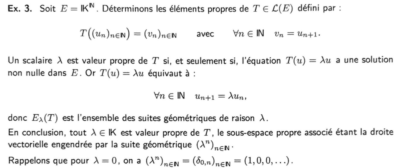 Soit E = IK. Déterminons les éléments propres de T€L(E) défini par :