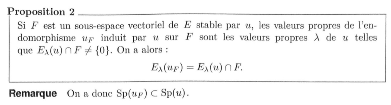 Si F sev de E stable par u, quelles sont les valeurs propres de l’endomorphisme induit par u sur F ?