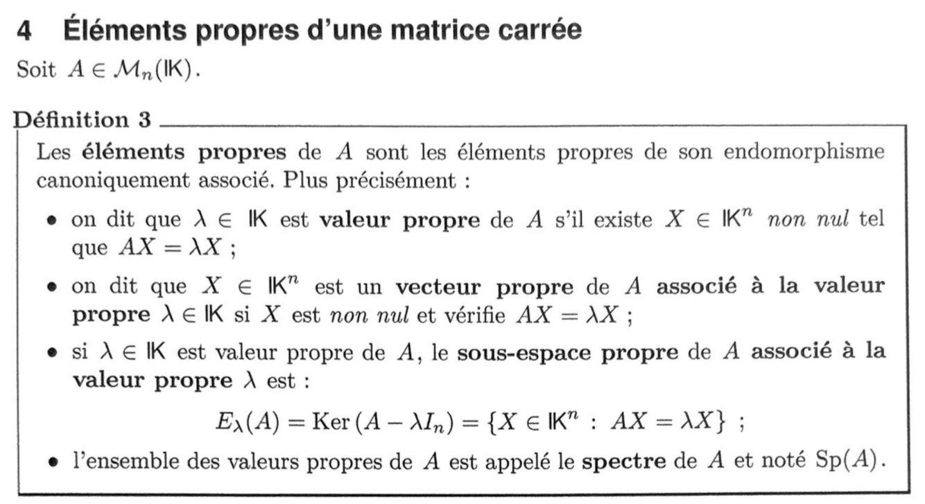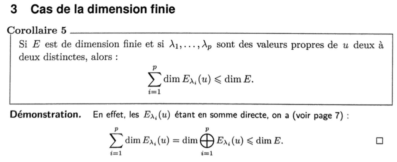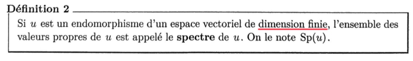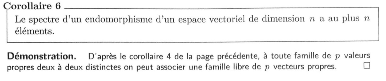 Combien de valeurs à le spectre d’un endomorphisme d’un ev de dimension n ? Le démontrer