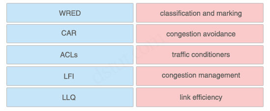 LLQ is also known as Priority Queuing–Class-Based Weighted Fair Queuing (PQ-CBWFQ). LLQ provides a single priority but it’s preferred for VoIP networks because it can also configure guaranteed bandwidth for different classes of traffic queue. For example, all voice call traffic would be assigned to the priority queue, VoIP signaling and video would be assigned to a traffic class, FTP traffic would be assigned to a low-priority traffic class, and all other traffic would
