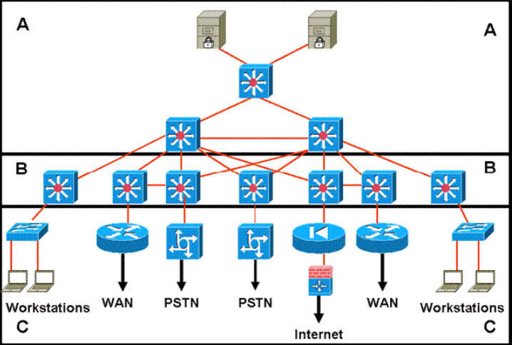 In the most general model, the Building Access layer uses Layer 2 switching (or Data link switching), and the Building Distribution layer uses multilayer switching.