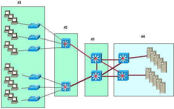 A standard, Layer 2 campus network design is pictured. Which numbered box represents the distribution layer?