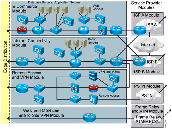 + WAN/ MAN and site-to-site module: provides connectivity between remote sites and the central site over various WAN technologies.