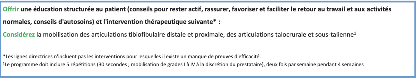 Quelles sont les recommandations pour une entorse de la cheville de plus de 3 mois?