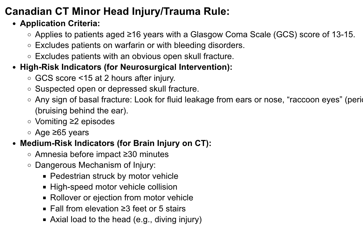 Selon le canadian CT minor head injury/Trauma rule : Quels sont les facteurs de risque grave et médium. ( Pour lesquels il y a référence à l’urgence )