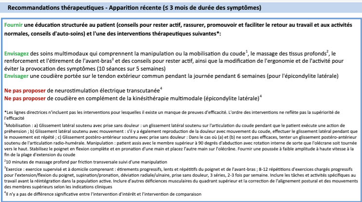 Quel est la recommandation thérapeutique pour une douleur de moins de 3 mois