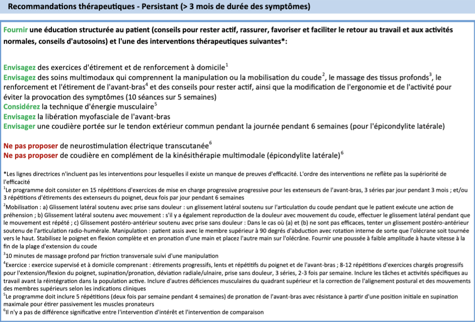 Quel est la recommandation thérapeutique pour une douleur de plus de 3 mois