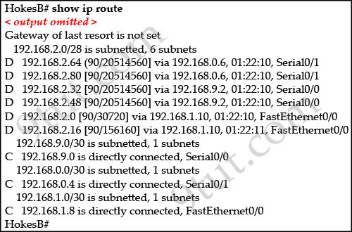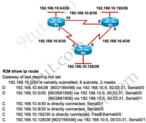 D 192.168.10.64/26 [90/2195456] via 192.168.10.9, 00:03:31, Serial0/0