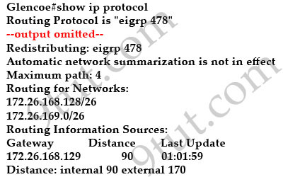 The EIGRP configuration in the Glencoe router uses a single network statement. From the output shown in the graph would advertise these networks in EIGRP?