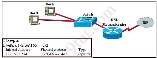 The user of Host1 wants to ping the DSL modem/router at 192.168.1.254. Based on the Host1 ARP table that is shown in the exhibit, what will Host1 do?