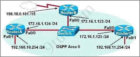For answer F, if there is no loopback interface configured on RouterA or RouterC then F is correct (as RouterB has the highest IP address on active physical interface 198.18.0.101) but we are not sure about that.