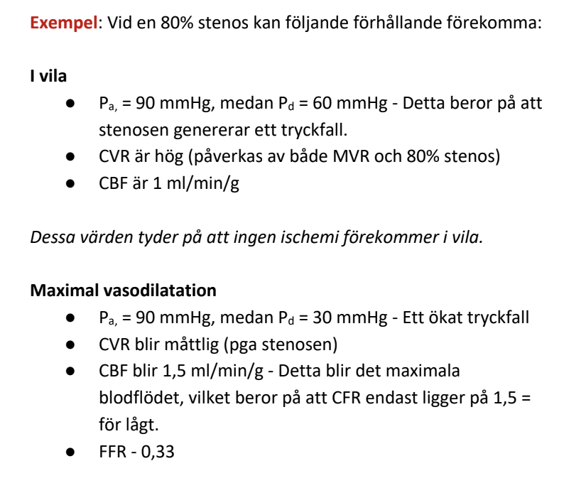 En signifikant stenos orsakar en obstruktiv CAD → tillräckligt CBF i vila, men otillräckligt CBF vid ansträngning (dvs. CFR < 2.0).