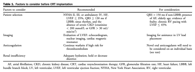 Quels sont les facgteurs à considérer avant l’implantation de CRT?