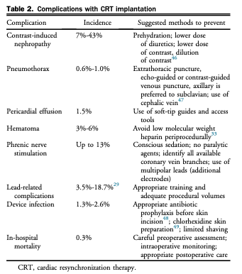 Nommer des complications associées à l’implantation du CRT?