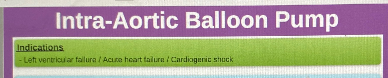 What is the indication for intra-aortic balloon pump?
