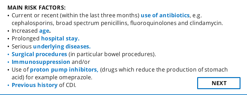 What are the main risk factors for C.difficile infection?