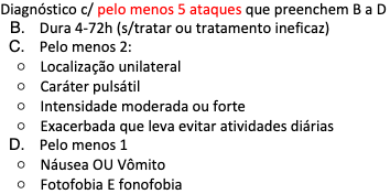 HAS, insuficiência arterial, IMAO, lítio, ISRS, aura prolongada