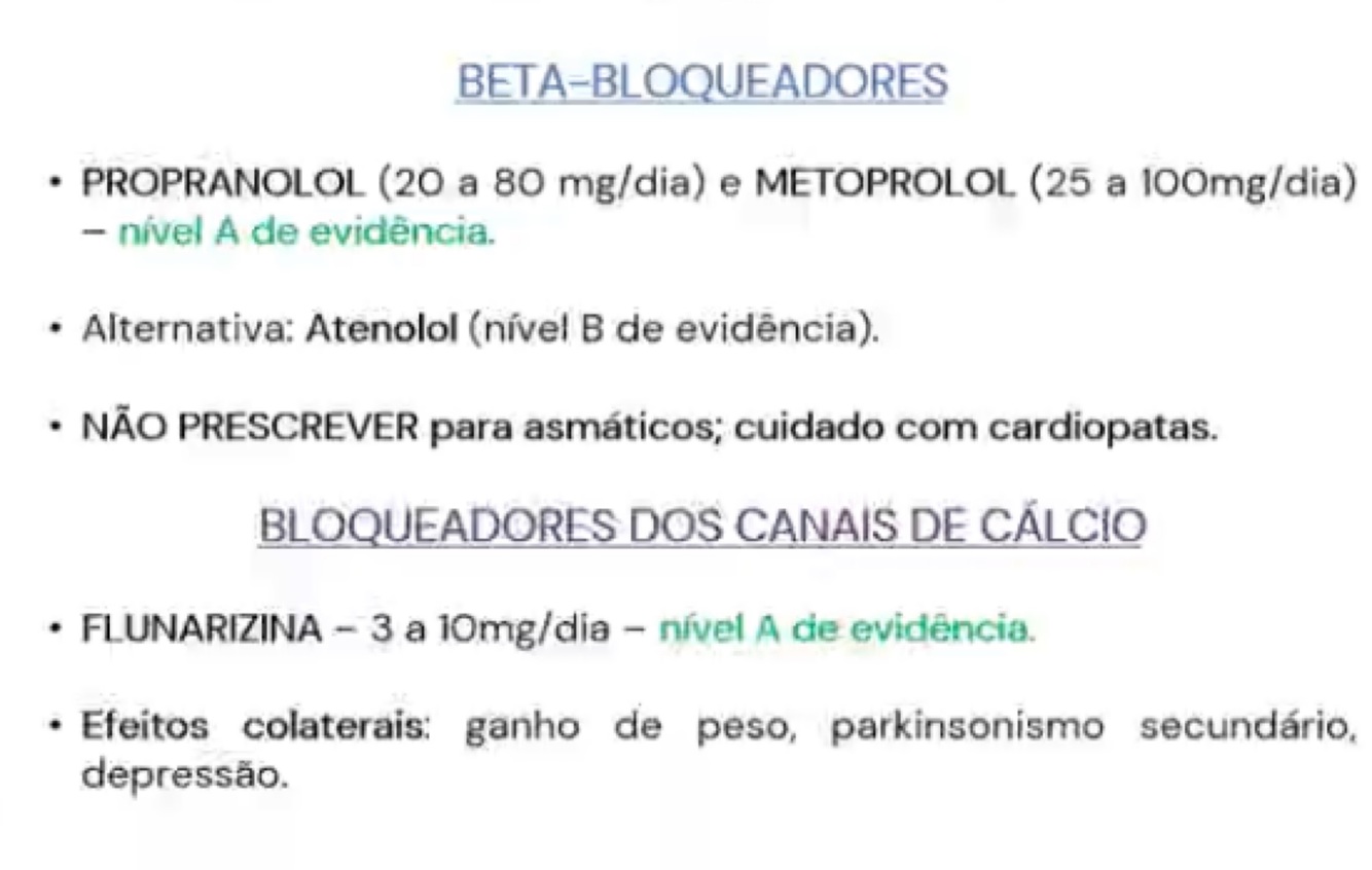 Medicamentos de escolha para o TTO profilático da enxaqueca: