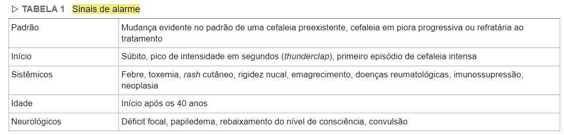 Quais são os sinais de alarme nas cefaleias?