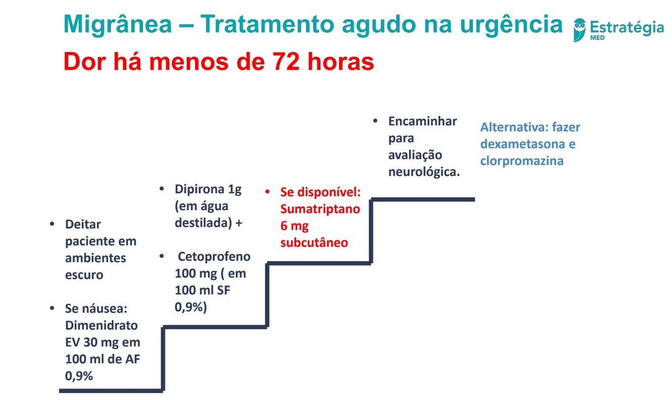 Se houver piora ou não houver melhora com a primeira medida,deve-se associar a outra classe de droga(p.ex, se o paciente não apresenta melhora com analgésico ou anti-inflamatório não hormonal , associa-se bloqueador dopaminérgico e/ou triptanos parenteral. nesses casos deve-se também considerar a necessidade de investigação de patologias secundárias sobrepostas e a possibilidade de internação para controle de crises refratárias