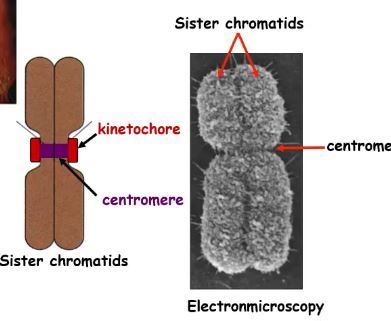 chromatin condense- forms two sister chromatids with a centromere in the middle, with kinetochores on each side centrosomes also go on opposite side