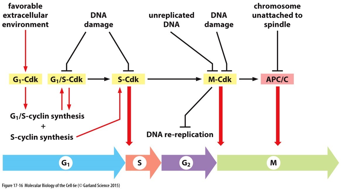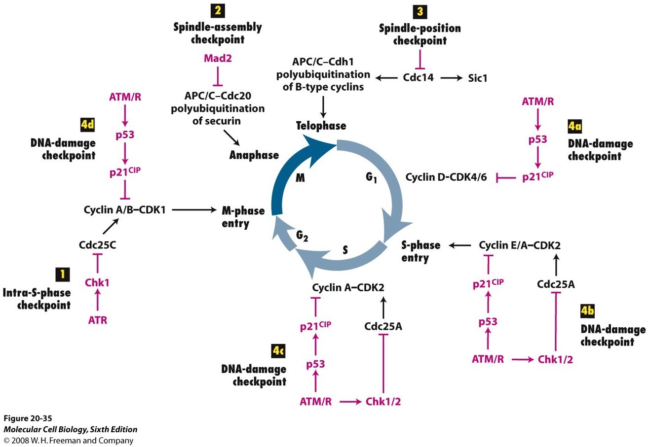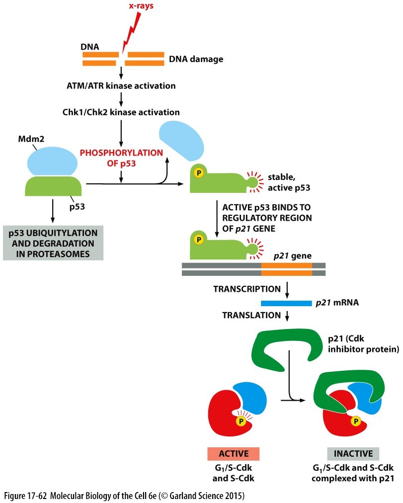 If DNA gets damaged in G1, how is the cell cycle inhibited?