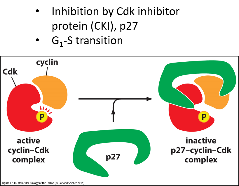P27. Binds to active Cyclin-Cdk and prevents it from phosphorylating anything.