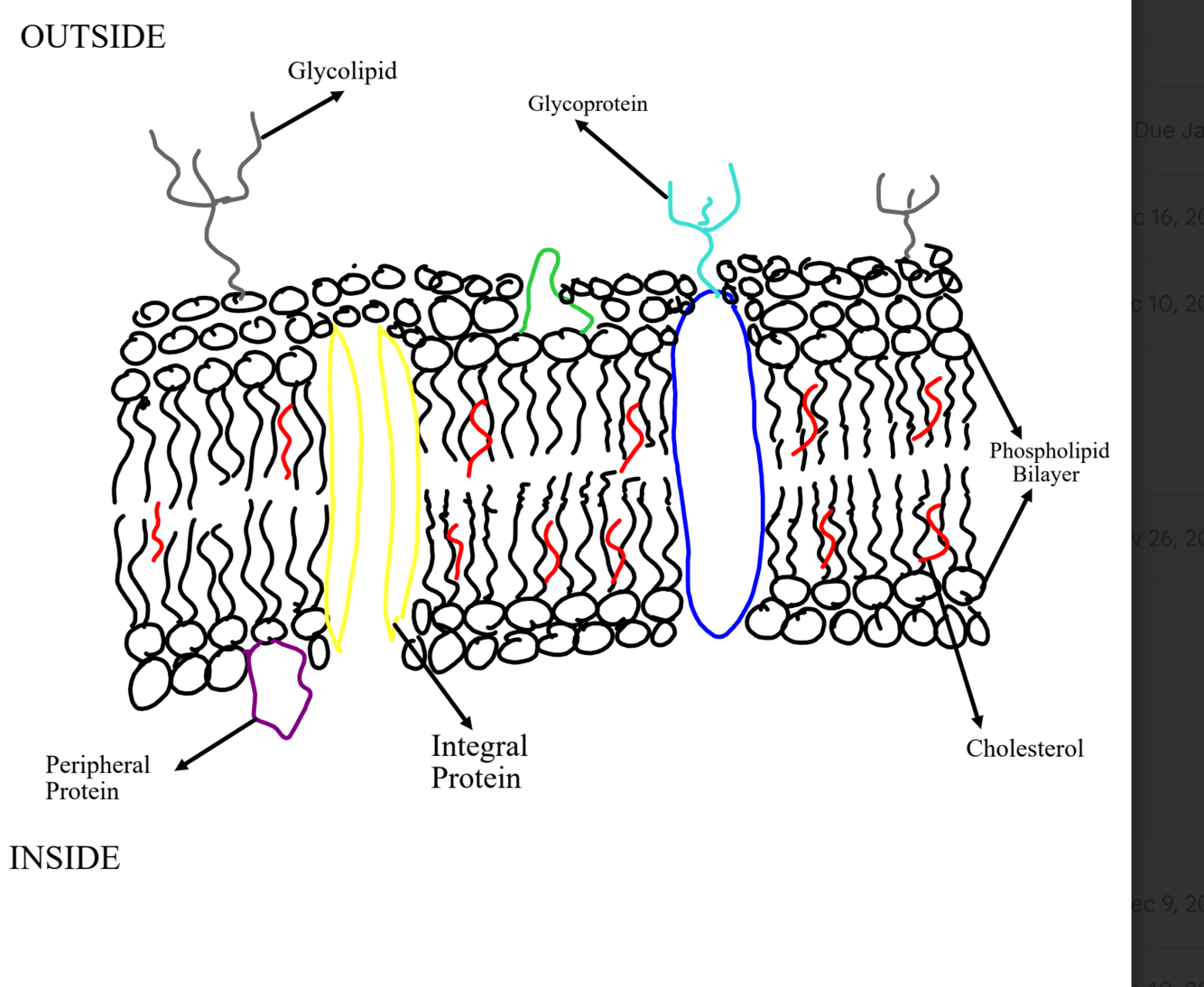 Describe the drawing of the fluid mosaic model