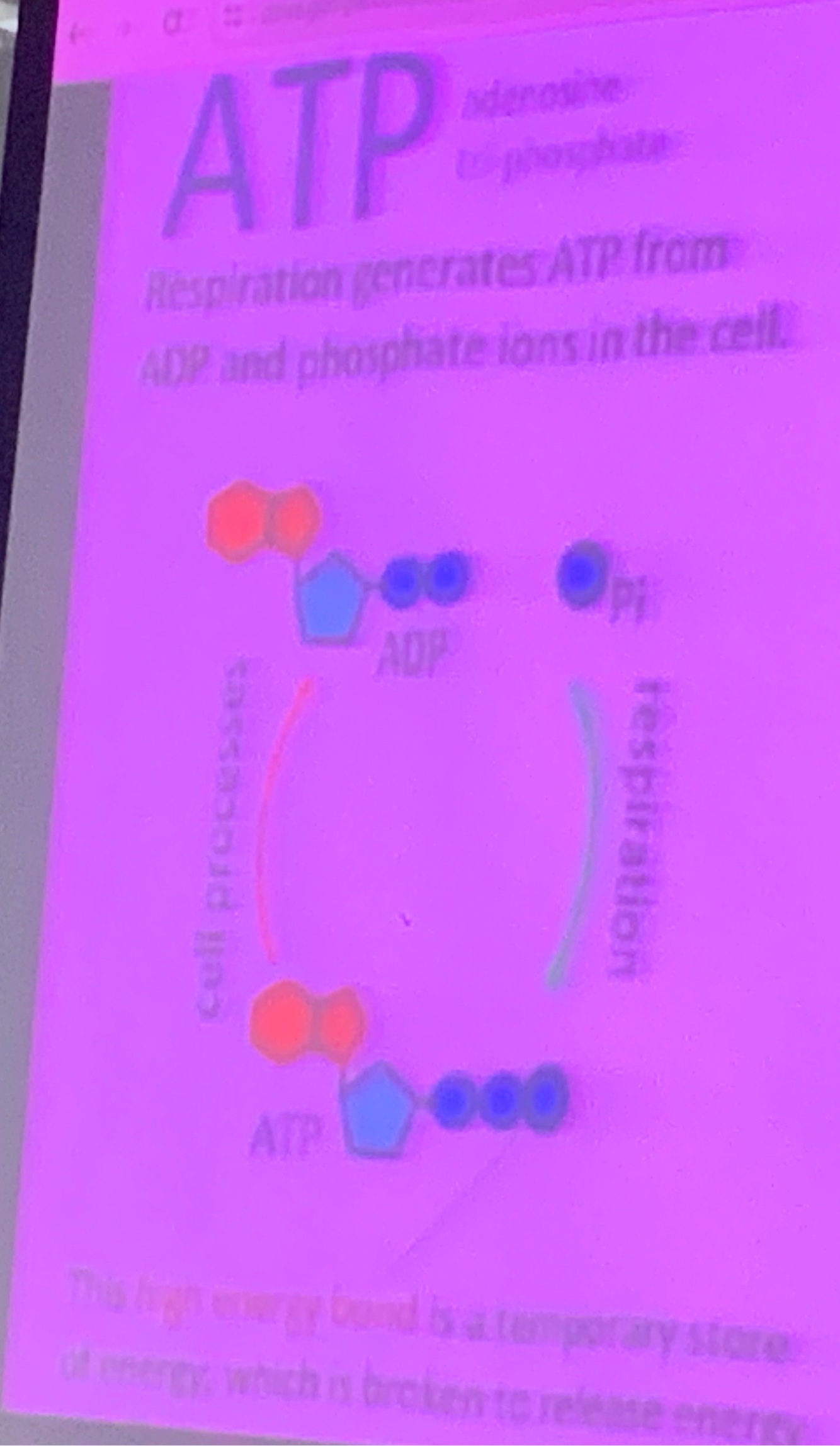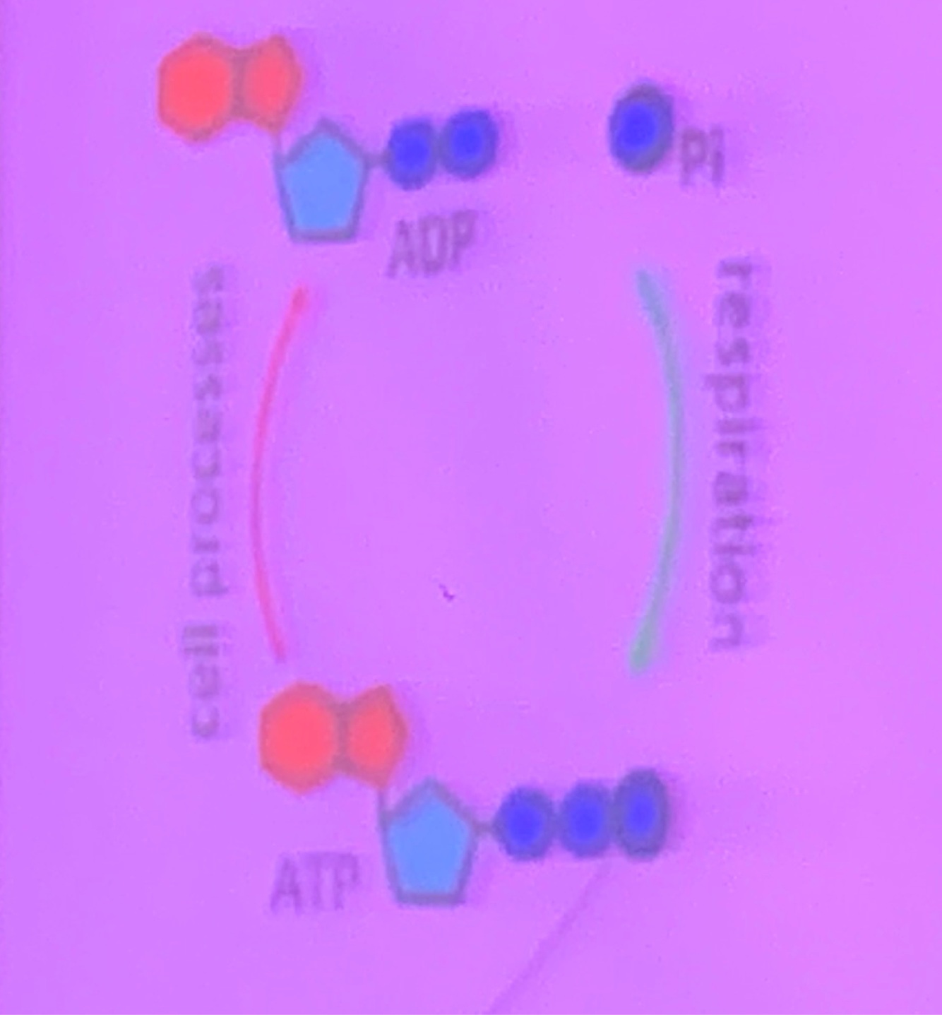 - “breathing” (external respiration) under this broader term — encompasses also cellular processes where oxygen is used to produce energy and carbon dioxide is the byproduct // (general): break down of organic molecules to gain energy (-> ATP)