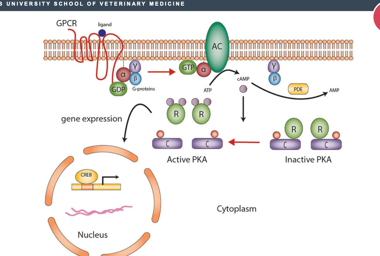 PKA can also go into the nucleus of cell and bind to cAMP response element binding protein or CREB protein for short.