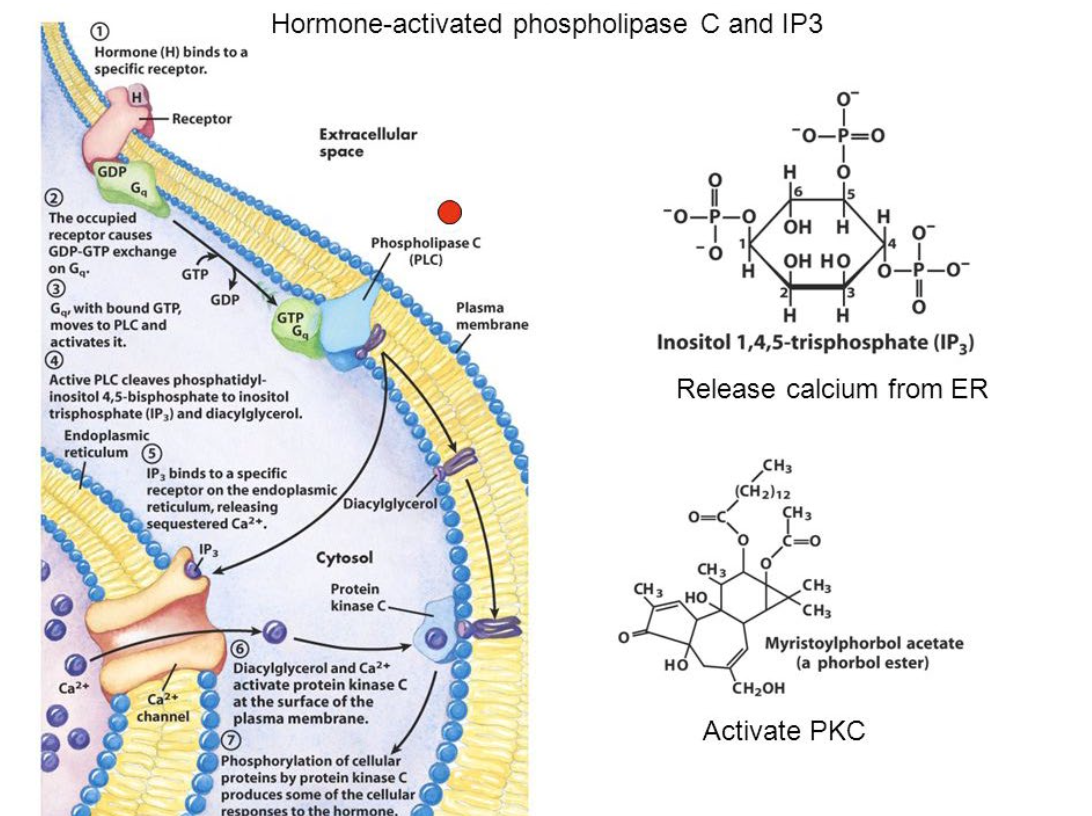 calcium now in cytosol and then it binds to the ? and it will activate the protein kinase C (NOT protein kinase “A”)