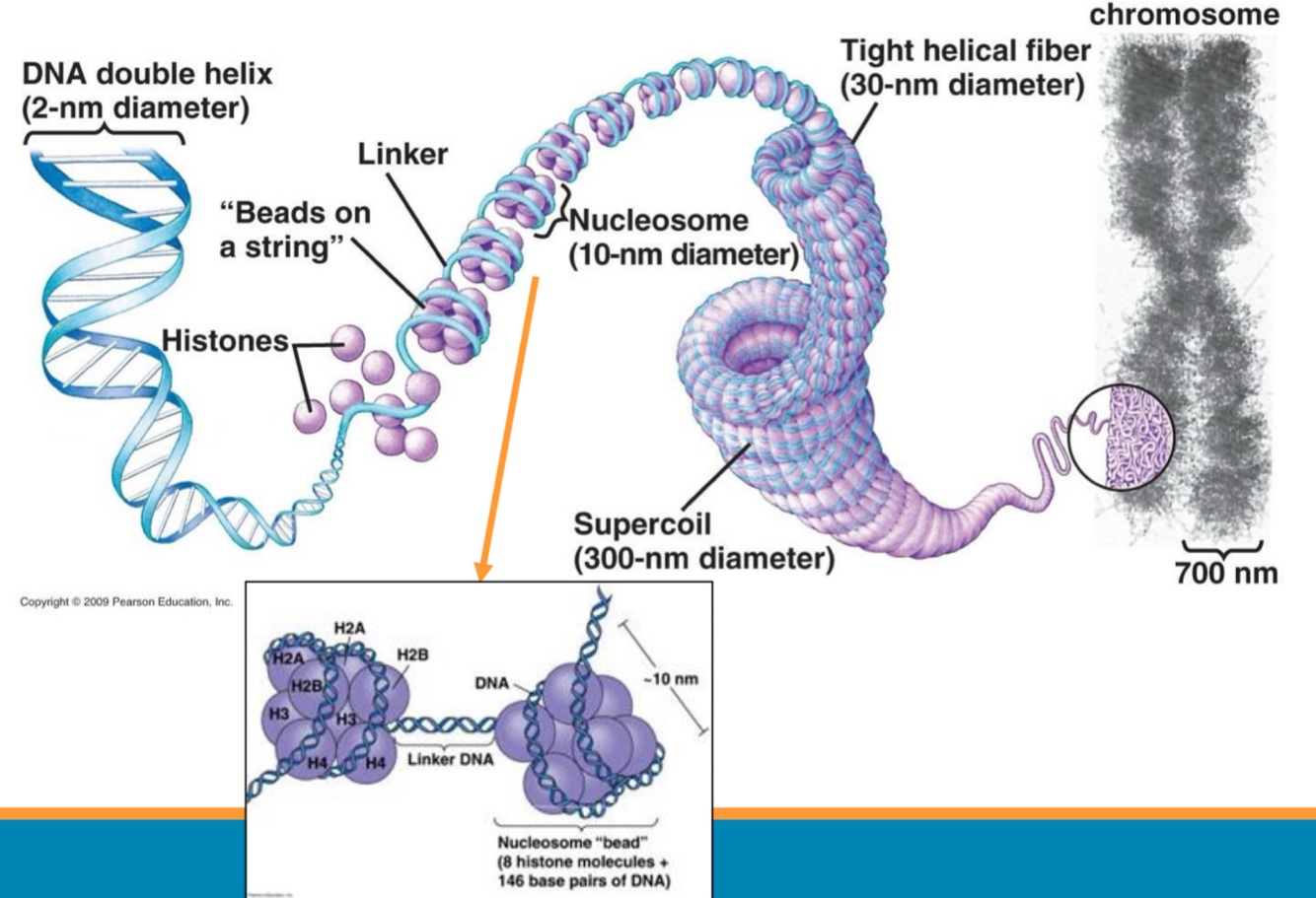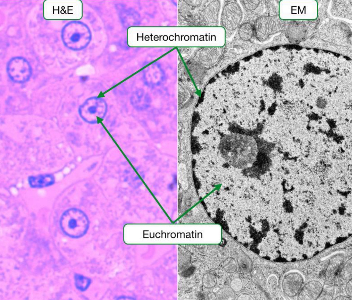 - chromatin = heterochromatin (inactive) + euchromatin (active)