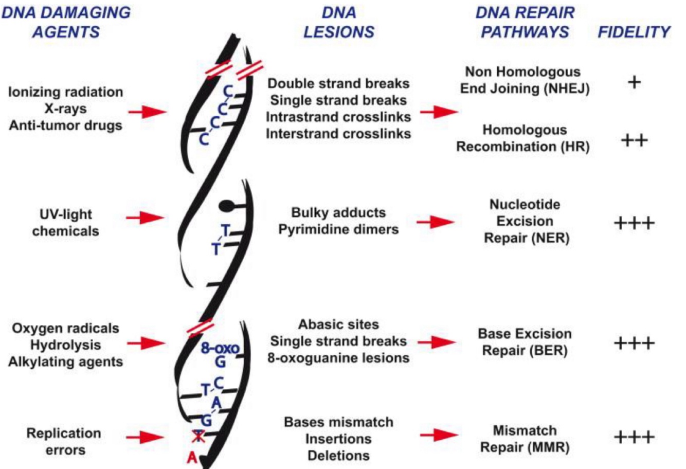 - many small alterations in DNA can be fixeed with high rate of fidelity = NER used most often