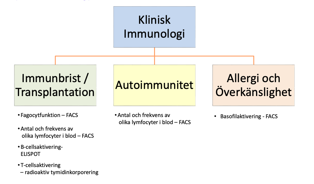 Nämn också specifik någon analys+metod som görs vid transplantation, autoimmunitet samt vid allergi.