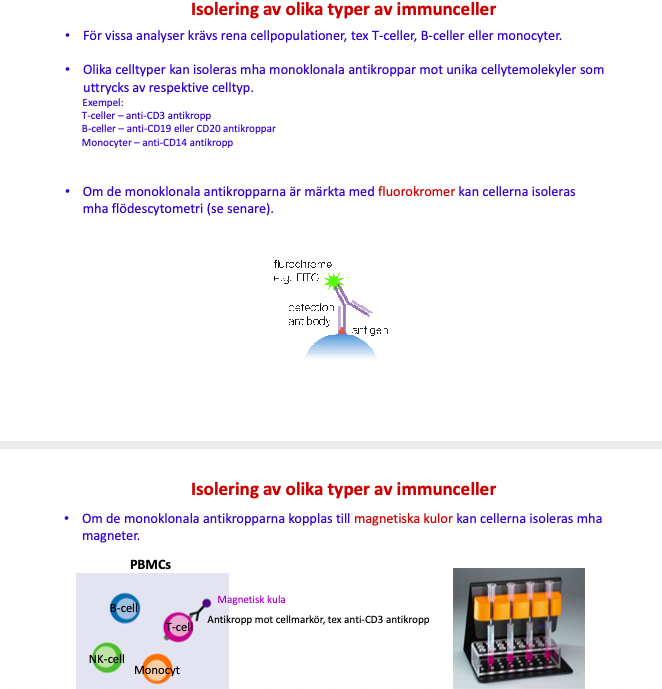 Varför behöver man ibland isolera olika typer av immunceller? Hur kan detta göras?